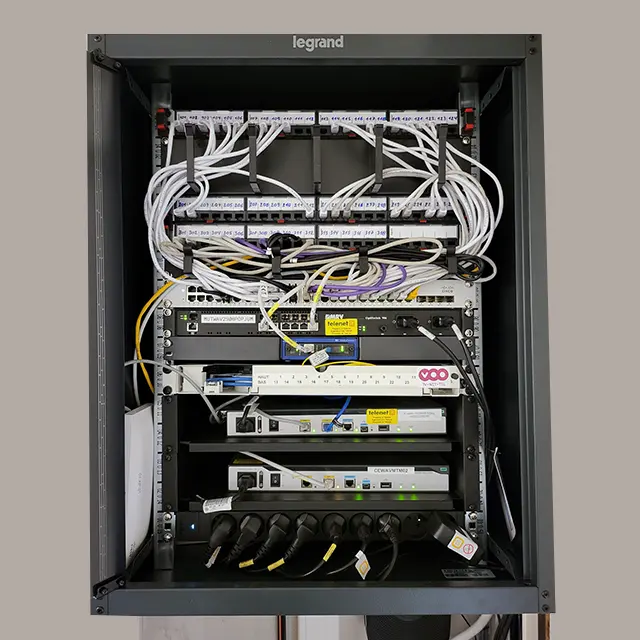 - L’installation de “rack” informatique, avec solutions switch et wifi